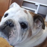 Even though I’ve got a list of ailments right now, I am one sweet Bulldog. I tried to do some lap sitting yesterday at Dr. Larsen’s and she said I need some intensive work on my tail and she was hesitant to let me climb up. But this Bentley James just jumped on up anyway. Even though she said I did not smell like roses, she was happy to let me lick her face.