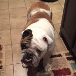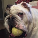 4/11/16 Update: This boy is just perfect! He is the sweetest love bug, and just wants to play ball and fetch all the time. He does still, however, have a hard time breathing, if he gets to winded, so we have to keep the play time short. At the Mutts Canine Cantina event, he had to take breaks out of the heat often, because of his breathing. He is our little shadow here at the house, and wants to be close to you at all times. He is the perfect guy for anyone who likes to lounge on the couch, and have a little “crazy” play time every now and then.