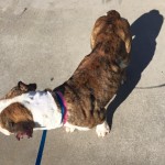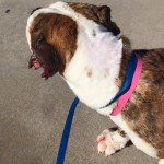 2/4/16 Update: Dr. W. released Anna Tuesday 02/2/2016 and myself and 3 of my bulldogs (Stewart, Lola and Miss Sadie Lou) went and brought her home with us. She is a joy to foster. Even after what she’s been through she is happy, loving and sweet. She is fine with my cats and my herd of Bullies. She is a little aggressive at food time because of not having food for so long. She is getting better each day with this because she is finding out that the food “Just Keeps A Coming”! She walks on her leash like a pro. She also is a talker. She talks back to you when you talk to her. She has energy and is doing very very well.