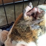 Welcome poor Anna into Rescue. She is 2 years old and weighs only 44 pounds. Anna has obviously been attacked. She is missing part of one ear and the other one is lacerated, and she has puncture wounds all over her body. Unfortunately, she’s not chipped. and was picked up as a stray. She is very malnourished and will require lots of extra care before she is available for adoption.