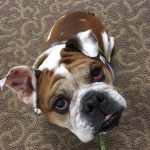 We know nothing of his background, but so far, he seems very sweet and well behaved. He walks well on a leash and was an excellent passenger. Like many Bulldogs from the shelters, his eyes, ears, tail and skin need a little work. He also has a little bit of a cough, but has been on meds at the shelter for that. He is heartworm negative and still needs to be neutered. He is a little short, stocky, reddish brown and white. His ears perk up just a little and he has just a little bit of a snout. He is determined to let go of his past and find the perfect new home.