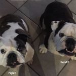 What else do we know about Bandit? He is a BONE HOARDER! When the other dogs are out of their crates, he will sneak in and grab their chew bones and hide them in his crate. When all the bones are missing, I know exactly where to find them! Bandit has lots of energy and is still learning how to play. His foster sister Piglet has been doing all she can to get him to engage in some Bulldog games, but he is still a little bit insecure. He will chase her, but when the games get too crazy, he gets a little nervous and runs to the back door. He is not an alpha dog and will fit beautifully in a home with other dogs that will be nice to him. He is a super sweet kid that is house-trained and crate-trained and only chews on dog bones.