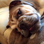 Update from Chief’s foster momma: Sweet, adorable Chief. This boy is all puppy and energy. He may be a Bulldog, but he bounces around like a rabbit sometimes, hopping after his foster siblings in the yard. They don’t know quite what to do with the youngster. Chief is 9 months old and weighs around 40 lbs. He is as sweet and as submissive as they come, with no food or toy aggression, preferring to make his foster family laugh and smile and laugh.