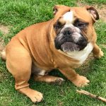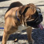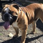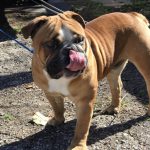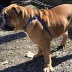 Welcome 18 month old, 60 pound Diesel to rescue. He came to us by way of two different shelters so we know nothing about his background. The second shelter had him neutered, but he most likely needs entropion surgery on both eyes. Other than that, he seems to be a perfect bulldog. He is so sweet and well behaved for his age.