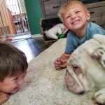 Dozer has been adopted! Dozer had a VERY exciting weekend. Yesterday, his new furever family came to visit and meet him. He put on his best Bulldog face and of course, it was love at first sight. Today, he went home. He was so excited, he almost pushed his new big brother out of the car to jump on in. Dozer is super excited to announce he has gained a big brother and a little sister, along with two hooman siblings. It’s mixed emotions over here for this first time foster mama, but I know he will be so loved and spoiled. Congratulations to sweet Dozer!