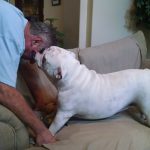 Gabby was ADOPTED!!!! Gabby found her perfect fur-ever family and moved in with them on Saturday. She is now living the life of luxury and enjoying being the center of attention as an only dog. We couldn’t be happier for this sweet girl and even though we miss her we know she will want for nothing and will be getting all that she deserves for the rest of her life. The Menard Family has grown by 1 and is blessed beyond measure to now call Gabby their own. Here is the 1st fur-ever update from Gabby’s new dad: “We have been blessed by Gabby’s adoption; she is a true gift from God, as was Lola (the Menards’ late bulldog). As such, she deserves our love, attention, care and devotion. It has been a busy weekend. We purposefully planned many errands (Hollywood Feed, Best Buy, our auto mechanic, etc.) and activities in which Gabby could participate and star as a celebrity. Gabby is at peace, calm and utterly comfortable and happy.” Please join me in congratulating the Menard family and Gabby and wishing them all a happy life together