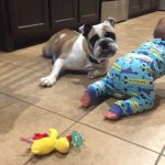 2/19/17 Update: Hello, everyone! Sorry, I have been MIA. My whole foster family came down with the flu, and like a good foster baby that I am, I took very good care of them all. I made sure I laid with them, and let them get lots of rest. This week, me and my foster brother, or as Mom calls us, double and trouble (hehe!), have played our little hearts out. We chase each other, we race across the floor, I take his toys and make him mad. It’s all fun and games! I even help Foster Ma with the dishes every night… no prewash needed! Haha!