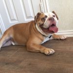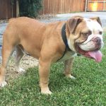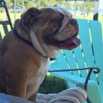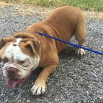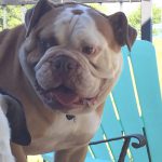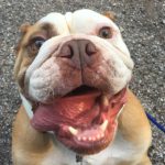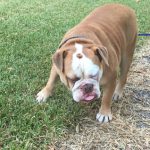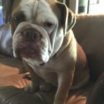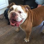 8/15/16 Update: We welcomed big boy, Hoss, into our home yesterday. This is one big, beautiful man. We think he’s one of the prettiest and healthiest Bulldogs we know. Weighing in at 69 pounds, Hoss is super sweet and snuggly. So far he gets along with everyone, except for one little tiff with his foster sister. It was clearly instigated by his diva sister. No fault of Hoss’s. His manners have something to be desired. We’ve been working on door manners and not jumping on people today. He is already better at jumping up, but door manners will take a couple of days. He will plow right through the door to be first. No potty accidents in the house!! Not even marking. He got a bath today and didn’t complain too much. His coat is gorgeous!!!! No hot spots or skin issues we see so far. He is such a good boy!! Stay tuned as we get to know this sweet boy.
