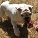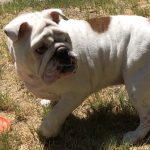 Our volunteer drove to the Houston SPCA to bring back Houston, a 2 year old owner surrender. The rescue coordinator called us the second Houston was surrendered asking us to please come for him. We checked with the rescue’s in Houston and no one had room for another bulldog. He is short, fat, white, double cherry eyes, skin problems, and pretty much what we get. However, Dr Larsen describes him “as sweet as can be!”