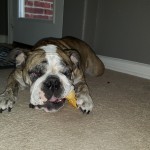 11/15/2015 Update: Kayla is doing great! She is my little shadow and has decided that she even wants to sleep with us now. That’s ok…we’ll always make room. Kayla is the first Bulldog I’ve ever had that comes when their name is called. I’m betting she thinks she’s getting food but we’ll go with, “Kayla is a good girl who follows instructions.” Yesterday was bath day and Kayla did just fine. She didn’t fight, squirm, or try to jump out. She stood there and took it like a Bully. Kayla loves her foster sisters and even gives them a nightly cleaning. She licks their ears and paws and head and whatever else she has time for. We’ve really enjoyed our time with this lady!