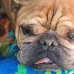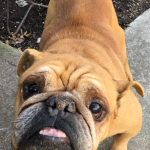 4/11/17 Update:  Hey Bulldog friends. It’s me, Nigel, back from a very long vacation! Well, not really a vacation … more like a staycation. But, wow, I’m like a new man now! As you might remember, at the age of 9, I was able to leave a breeding program where I was “A Ladies Man!” Well, I got that taken care of, and not only that, I got all my teeth pulled on the bottom. Turns out all the infection in my gums from my rotten teeth was preventing me from eating and keeping me sick. So….. I went to sleep on the table, Dr. Larsen changed me from a rooster to a hen…. and I woke up needing dentures! Yep, I need dentures, but I would also settle for someone that will soften my small kibble and add some canned food to my meals so I can continue gaining weight. I know I still look thin, but I have a big appetite now, and prepare yourself for the beefy Nigel that you will soon see. So, Bulldog people, I am New Nigel now, and I am looking for either a good set of dentures, or a family that loves seniors, that will feed me softened kibble, let me forget my past and love me forever!