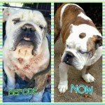 We are waiting a week on his adoption to wean him off of steroids and to finish his antibiotics. We will re-evaluate his skin at that time. We don’t want to overwhelm this family with two young girls with a new bulldog and skin issues all at the same time. We believe they will have no problem taking care of any future issues that arise concerning O’Neil’s health, but we feel it best to ease them into a new rescue as this is their first bulldog.