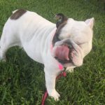 6/20/16 Update: Periwinkle is next in line to be spayed and find her family. Not so much a fan of the female Bulldogs, but she LOVES the men! Periwinkle keeps all the men’s faces clean and you will often find her sitting on the bed with them. Periwinkle is a dominant, tiny Bulldog who loves people, kids and male Bulldogs.