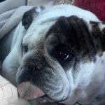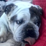 Please welcome Roxie to the Lone Star Bulldog Club Rescue family. Roxie, 3-years-old, was surrendered to a local shelter. The shelter folks were kind enough to surgically remove the THREE POUND mammary tumor (we’ll spare you the pics) this afternoon. She’s now on her way to our vet to recover. Please keep her in your thoughts.