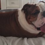 We picked up Snoop Dogg on May 1. He wasn’t the foster dog we were supposed to get, but due to a slight mix up, he was the one we ended up with. He was supposed to be a short-term foster case because he was young and handsome. He was expected to be adopted out quickly, but due to some behavior issues we discovered, that wasn’t the case. We were used to older, calmer Bulldogs in our home and that just wasn’t him. He came into our home like a storm. He chewed up all of our dog’s toys, he ran around like a crazy puppy and jumped on the furniture and drooled… oh, how he drooled on everything!