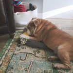 3/22/22 Update: Stitch is amazing! The easiest puppy I’ve ever seen. He enjoys his naps and mealtimes, as Bulldogs do. He gets a couple bursts of puppy energy throughout the day.