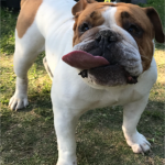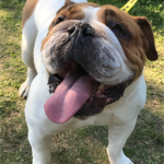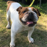 Sundae has been adopted! Sundae has moved south to Leander and was up for the trip! Sundae has been nothing but a true pleasure to foster and love. Sundae loved EVERYONE and EVERYTHING. Wherever there was action, that is where you would find her, right in the middle, front and center looking for attention and to be petted. Sam and Jennifer were so excited to finally meet Sundae. Their dog Toby noticed Sundae, but he was just as excited to lay in the floor and let Sundae get all the love. Sundae is anywhere anyone is passing out a pet, a hug or a kiss. For a Bulldog who was dropped off at a fire station by her family, she has come a long way in a very short time. Sam and Jennifer are off work all summer and are anxious to get to know Sundae and to have Sundae get to know them. Much happiness to this sweet couple for choosing rescue and for loving this lady named Sundae!