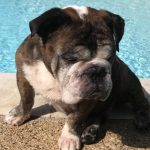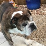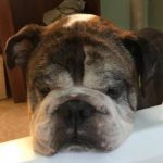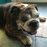 7/23/17 Update:  Vinny had a very fun-filled week. During the few days, Vinny was very active. On day 4, he learned he better take a nap. I think he was just so excited to be loved and fed, he didn’t want to close his eyes unless he was in your lap. He cannot jump on the furniture or do stairs very well. His back legs seem to give out every once in a while, but can run and play hard. He loves his spa treatments and is looking so much better every day. Vinny does not like to be locked in his crate (or his “room,” as we call it). He will let you know about it if you close the door. He will cry hard. Mr B was a softy and couldn’t stand the crying so he did a little test and let him hang with the girls for a short while. When he returned, Vinny was fast asleep in his room. Vinny is a momma’s boy, just wanting cuddles and kisses. He doesn’t seem very interested in kids. He just ignores them, but we will have another test with children tomorrow. He has enjoyed the visitors and has the best Bulldog manners we have ever seen. Vinny is such a great guy, full of love just wanting to please you in every way.