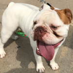 Winston Wyatt is unclear about what happened to him. What he has been told was there was a tussle over some dog food, or, his mom met a man that was not to crazy about him. Either thing might be true, or, either might not be true. All Winston Wyatt knows is that he was taken to a local shelter to find a family that wanted a bulldog . Winston Wyatt is 2, crazy excited to see people, and leaps thru the air like a leprechaun. Like all bulldogs that need a little bit of training he is a jumper, goes 100 mph and is into everything. Winston was not at all corporative when it came to having his picture taken. He was more into making sure everyone within 50 feet of him saw him and wanted to pet him. This guy is just amazing.
